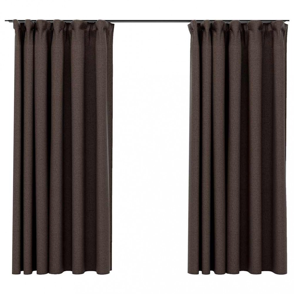 Draperii opace aspect in, carlige, 2 buc. gri taupe, 140x175 cm