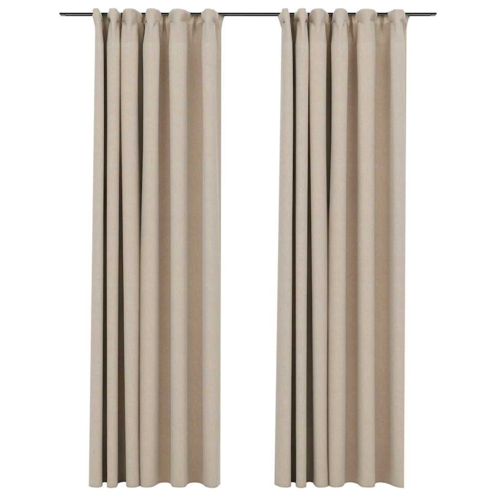Draperii opace aspect in, cu carlige, 2 buc. bej, 140 x 245 cm