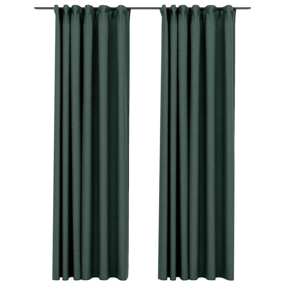 Draperii opace aspect in, cu carlige, 2 buc. verde, 140x245 cm