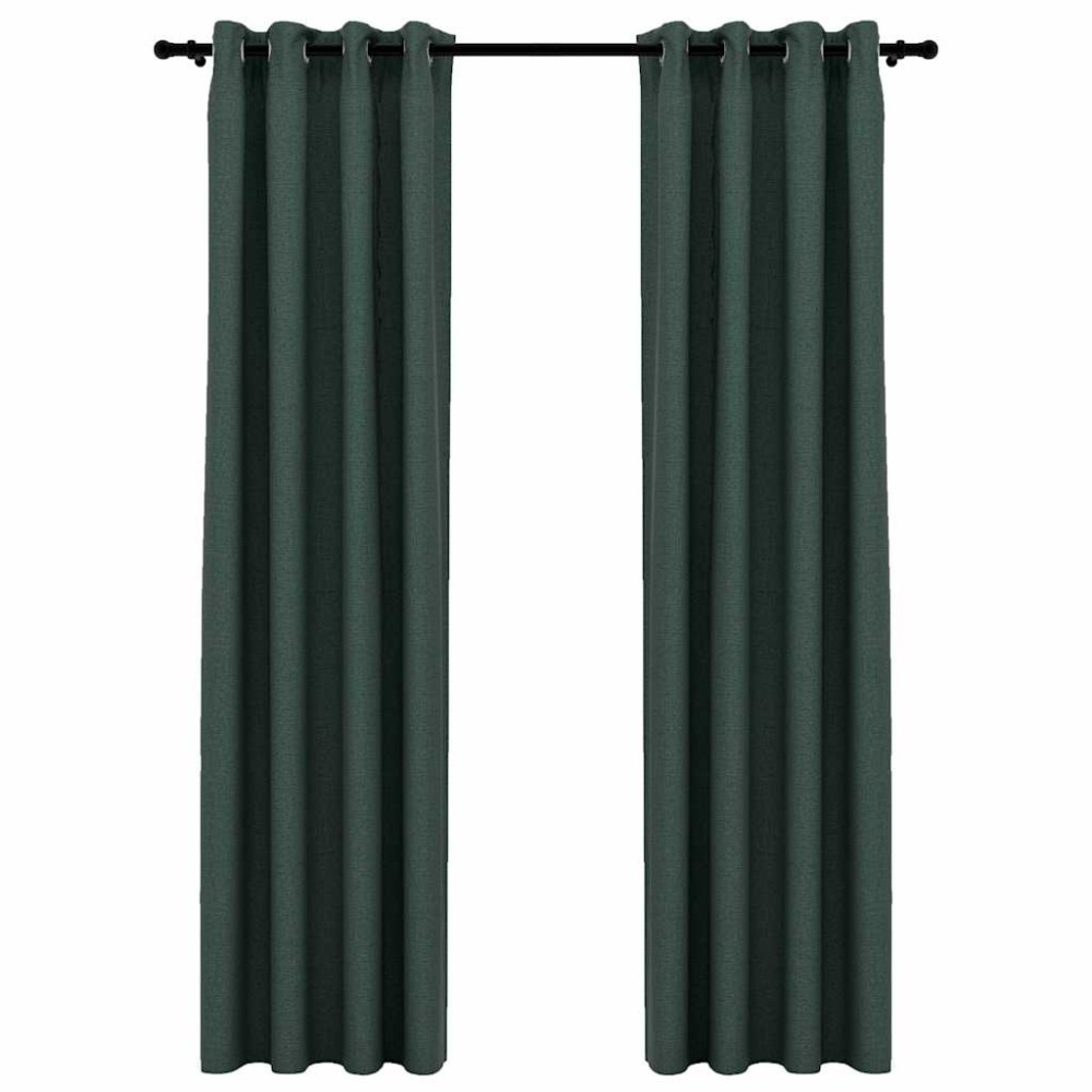 Draperii opace, aspect in, cu ocheti, 2 buc., verde, 140x245 cm