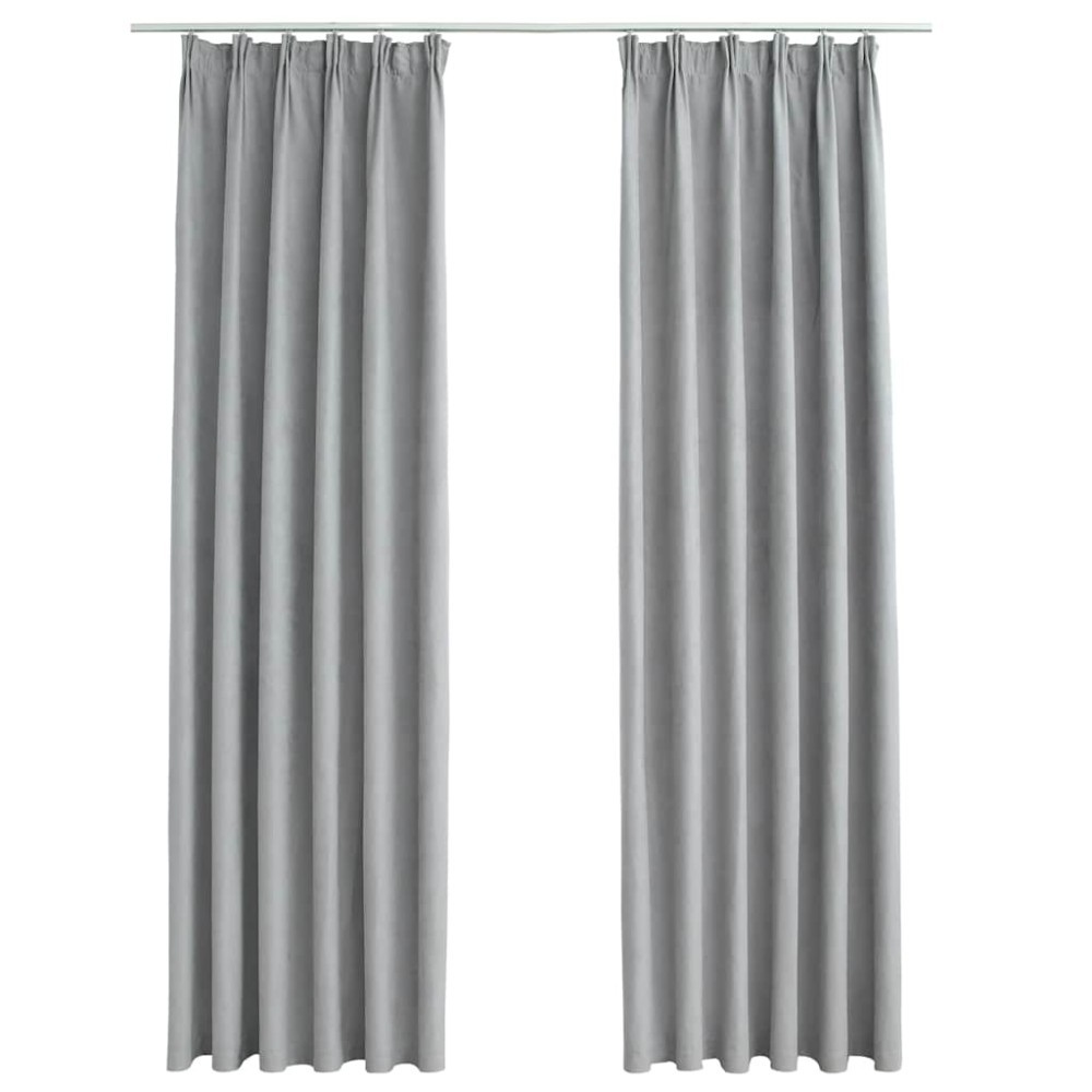 Draperii opace cu carlige, 2 buc., gri, 140 x 245 cm