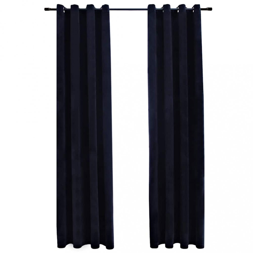 Draperii opace cu inele, 2 buc., negru, 140 x 175 cm, catifea