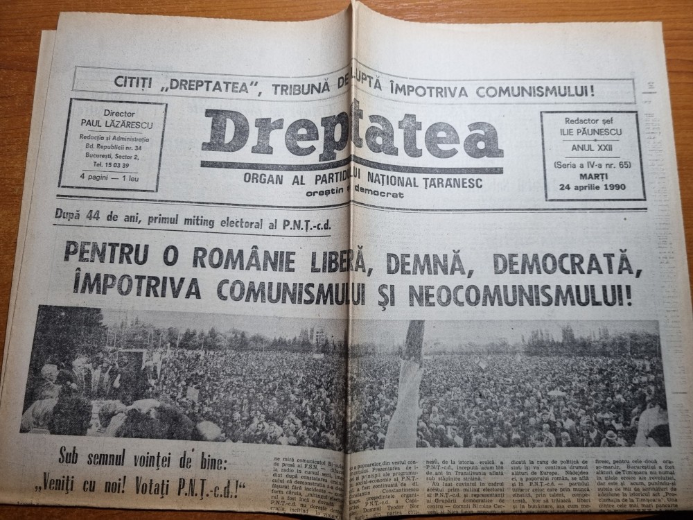 dreptatea 24 aprilie 1990-dupa 44 de ani primul miting electoral PN taranesc