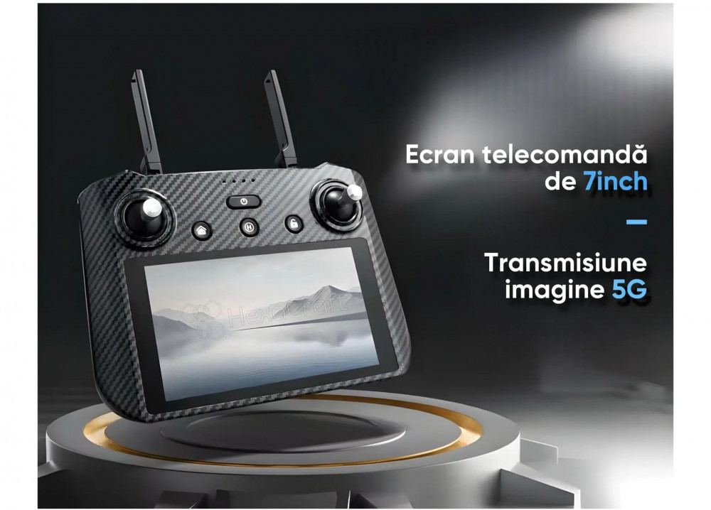 Bucura-te de o transmisie live de inalta calitate, fara intreruperi. Tehnologia 5G asigura o conexiune stabila si rapida, oferindu-ti imagini clare in timp real direct pe display-ul de 7inch al telecomenzii.