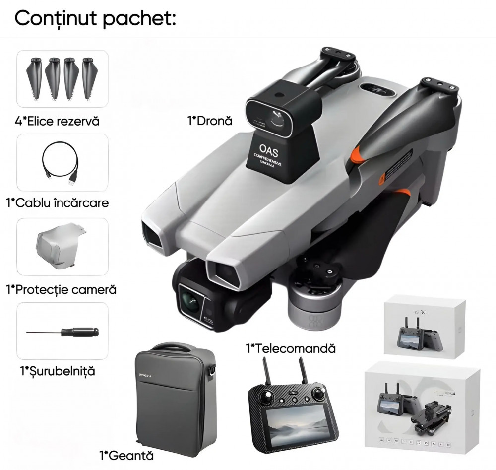 Senzorii de evitare a obstacolelor detecteaza pericolele din toate directiile, asigurand un zbor sigur si fara incidente.