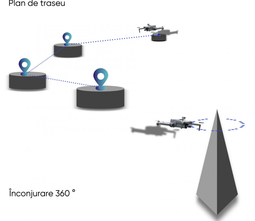 Creati si personalizati rute de zbor automate precise, functie perfecta pentru misiuni de cartografiere si explorare detaliata si realizati capturi dinamice ale subiectelor din toate partile.