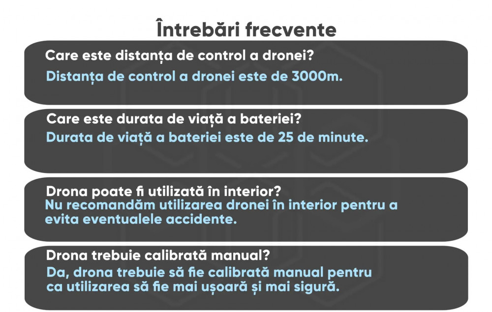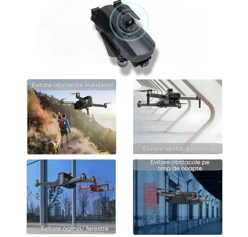Zburati fara griji cu ajutorul senzorilor avansati care detecteaza obstacolele din toate directiile, prevenind coliziunile si asigurand o experienta de zbor lina.
