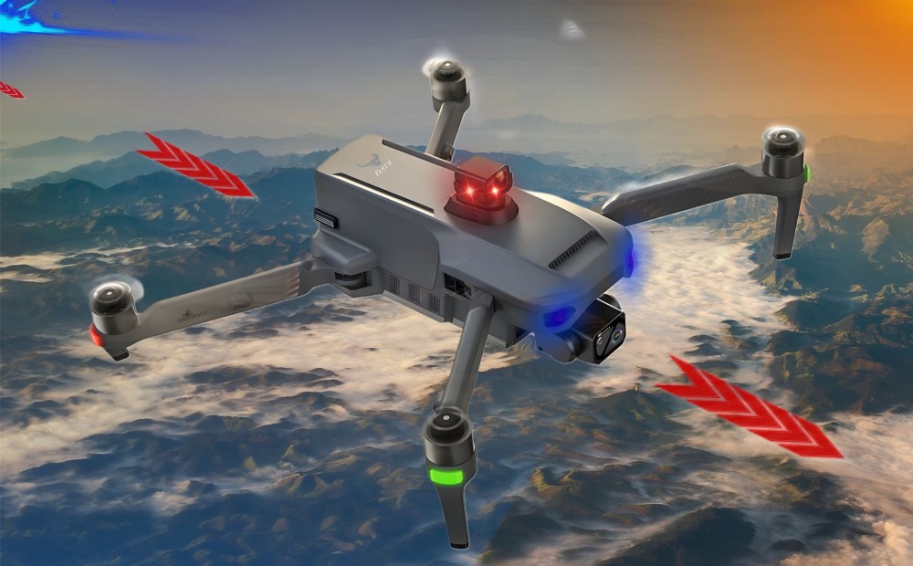 GPS-ul permite pozitionare fixa si intoarcere automata, iar senzorul de altitudine mentine stabilitatea la zbor stationar.