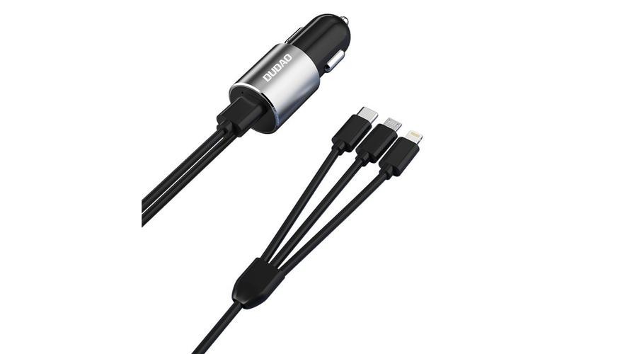 Dudao 3in1 USB autós töltő, 3.4 A, beépített Lightning / USB Type C / Micro USB kábel