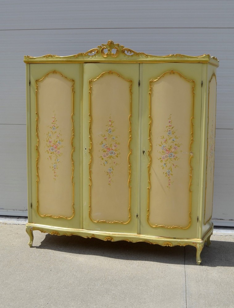 Dulap in stil baroc venetian, din lemn, cu pictura si sculptura manuala, usi curbate, perioada 1950.