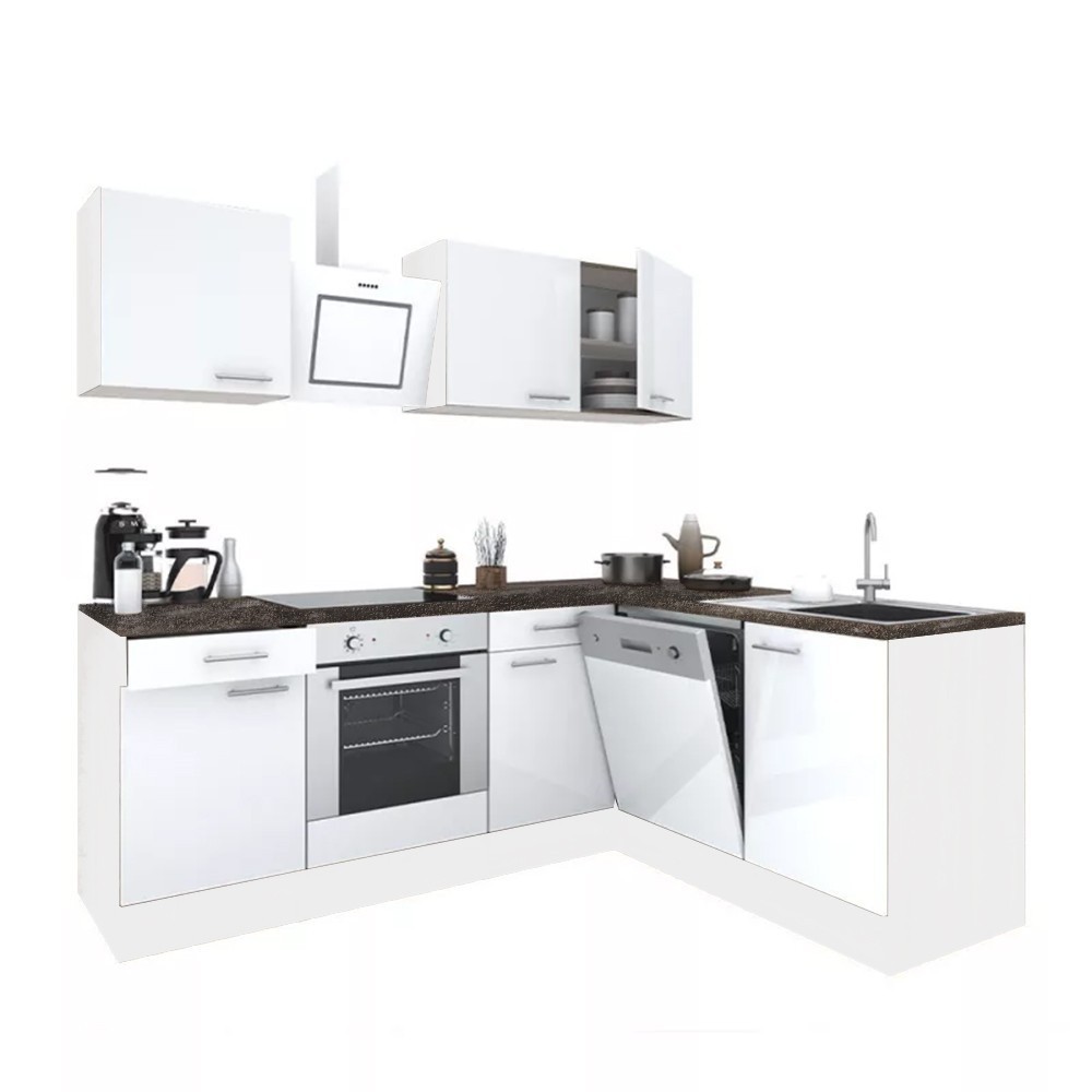 Corp de bucătărie de colț Yorki 220, corp alb, cu față alb satinat. Creatorul bucătăriei perfecte!