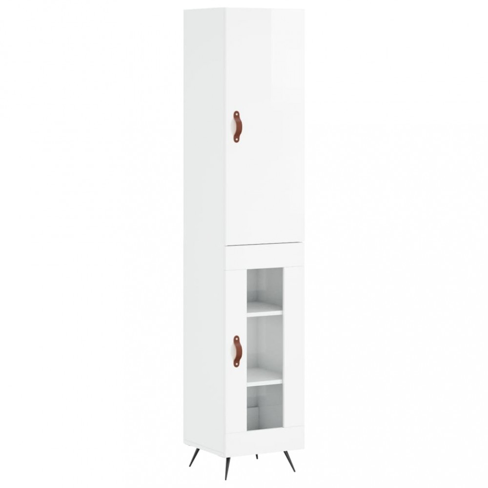 Dulap inalt, alb extralucios, 34,5x34x180 cm, lemn prelucrat