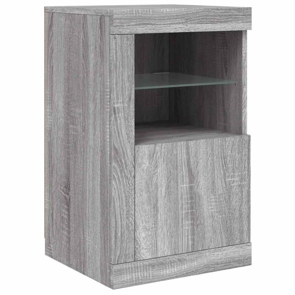 Dulap lateral cu lumini LED, gri sonoma, lemn prelucrat