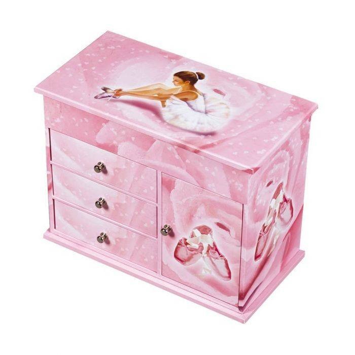 Cutiuta este din lemn si acoperita pe exterior cu o hartie imprimata. La interior materialul este catifelat, iar personajul este din plastic. Rotiti cheita, deschideti capacul si lasati figurina sa danseze si magia sa actioneze.