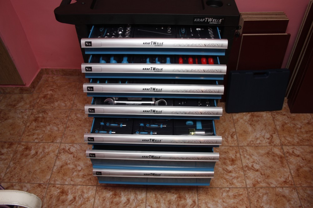 Dulap Scule NOU Echipat Kraftwelle 7 sertare 5 echipate si 2 sertare mari goale