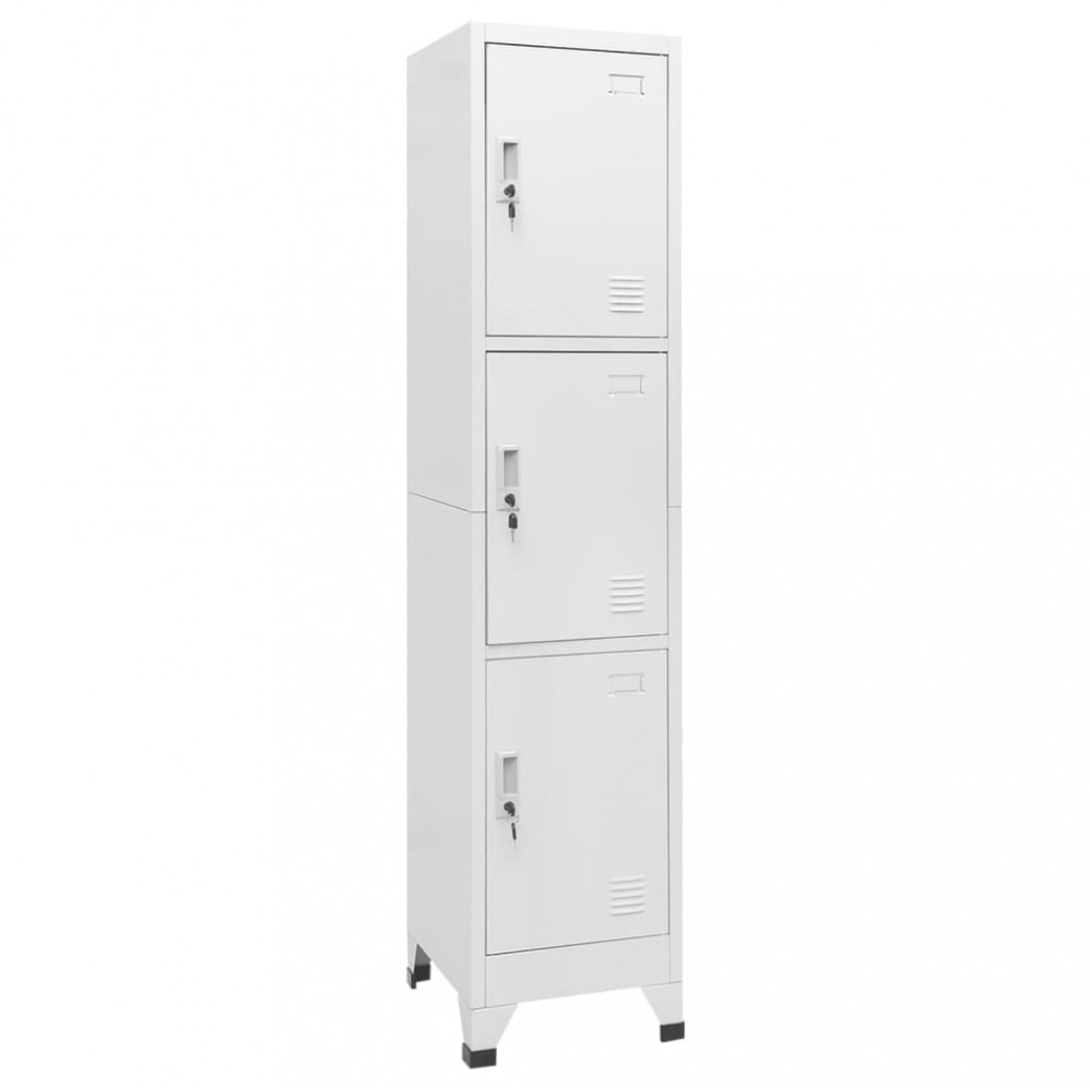 Dotat cu 3 compartimente și uși care se pot încuia, acest dulap stil vestiar are un spațiu amplu de depozitare pentru păstrarea în siguranță a hainelor și a altor obiecte personale. Fiecare compartiment are un suport pentru cardul de nume. Acest dulap de vestiar este fabricat din oțel de calitate superioară, fiind durabil și ușor de curățat. Este foarte ușor de asamblat.