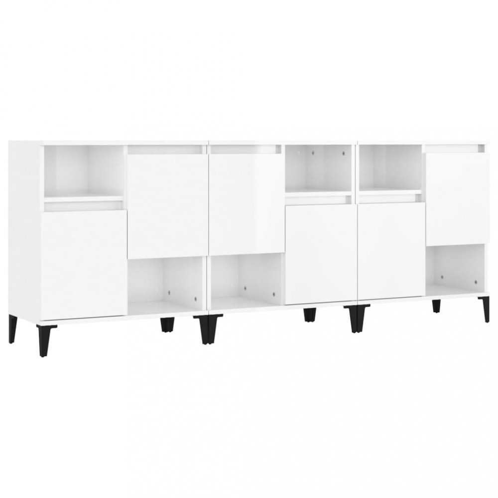 Dulapuri, 3 buc, alb extralucios, 60x35x70 cm, lemn prelucrat