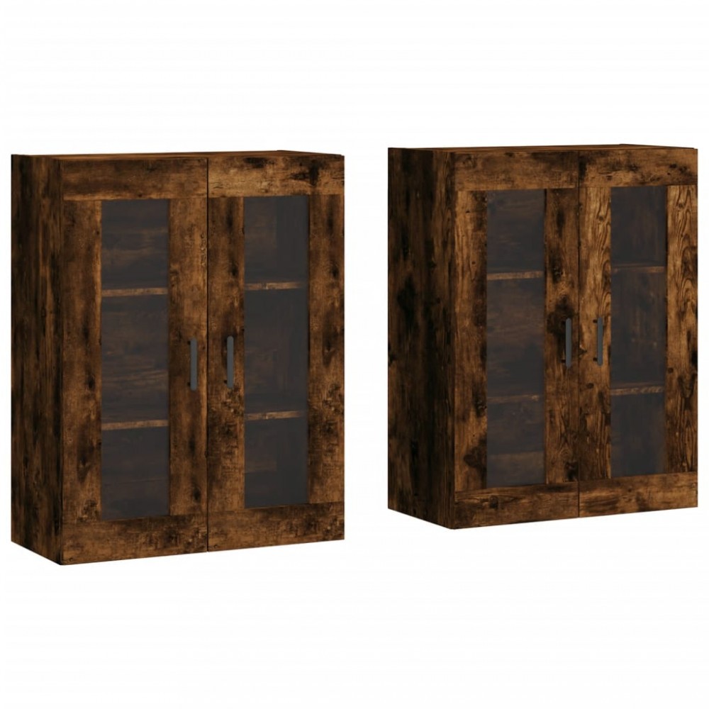 Dulapuri de perete, 2 buc., stejar afumat, lemn prelucrat