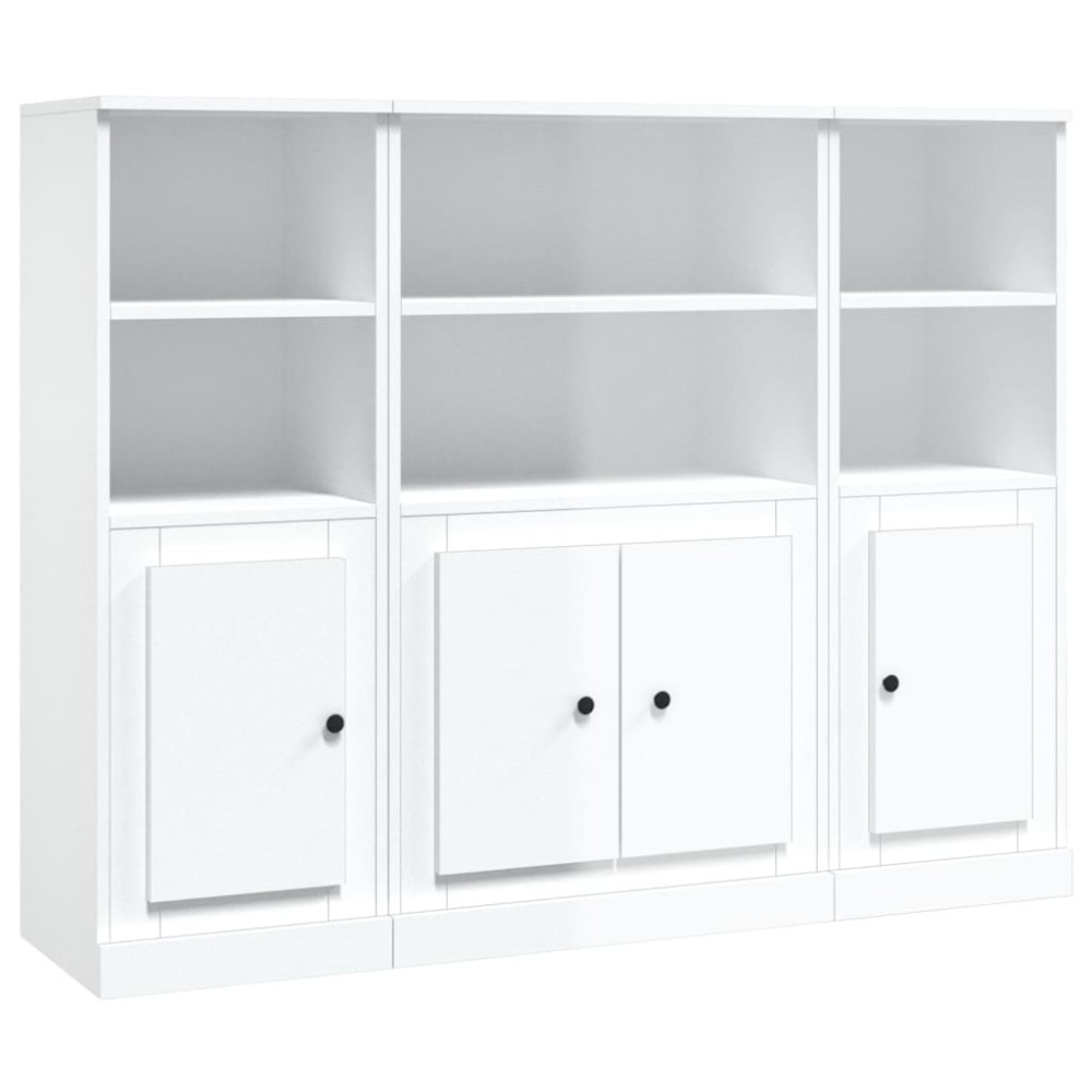 Dulapuri inalte, 3 buc., alb extralucios, lemn prelucrat