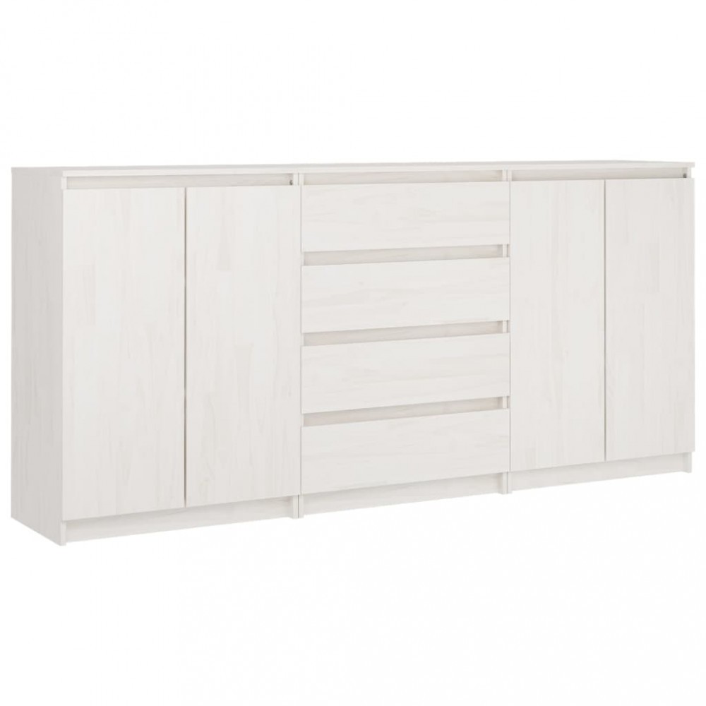 Dulapuri laterale, 3 buc., alb, lemn masiv de pin