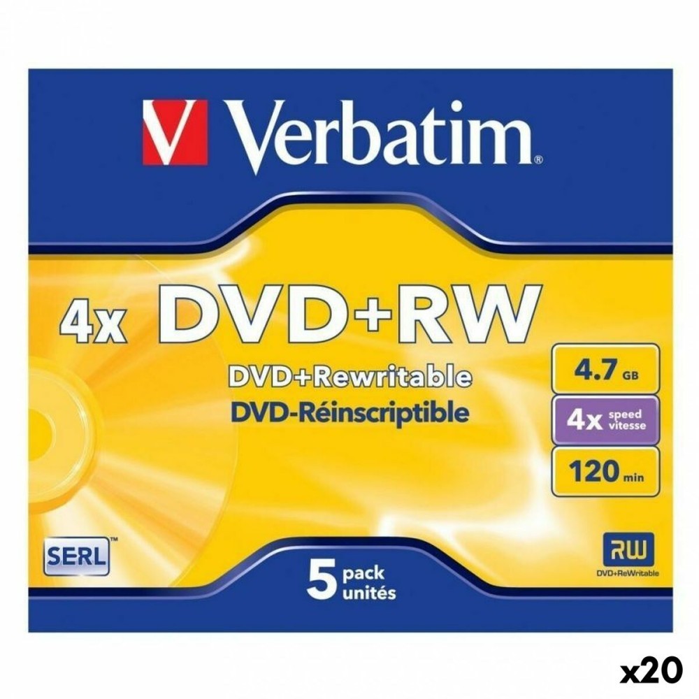 DVD+RW Verbatim 4,7 GB 4x 5 Piese (20 Unități)