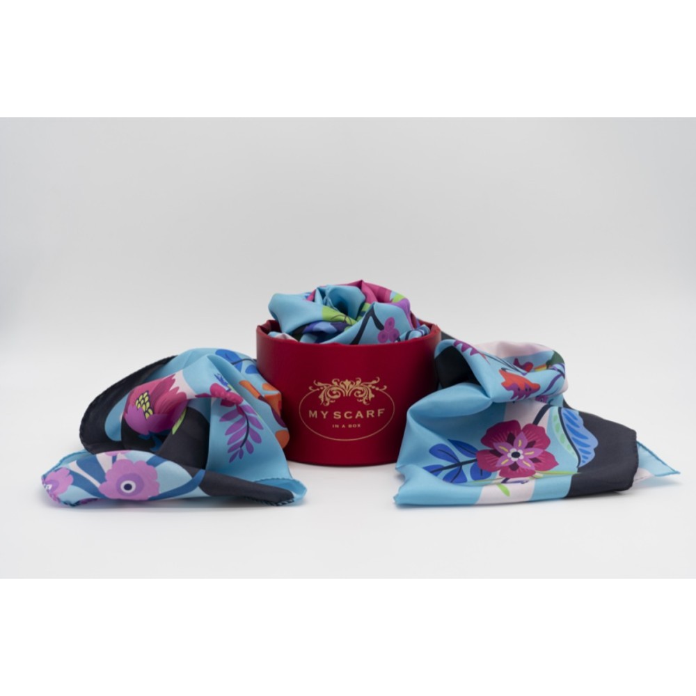 Eșarfă Arcadia din mătase naturală. Culoare: multicoloră Dimensiuni: 165 cm x 40 cm Material: 100% mătase naturală Cusătură : manuală Sezon: toate sezoanele Made in Italia Eșarfă 100% din mătase naturală, cu imprimeu integral cu motive florale. Vopsită, într-o ediție limitată, prin tehnici tradiționale care dau o iridescență incredibilă.