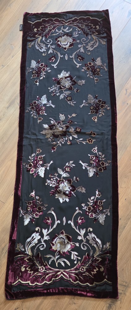 Eșarfă dama lunga din mătase naturala cu model floral și margini din vâscoză fina.