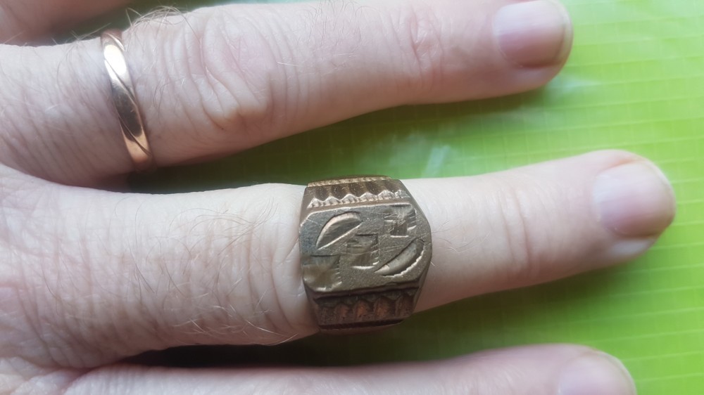 E137-Inel bronz masiv vechi STARE BUNA. Latime 13