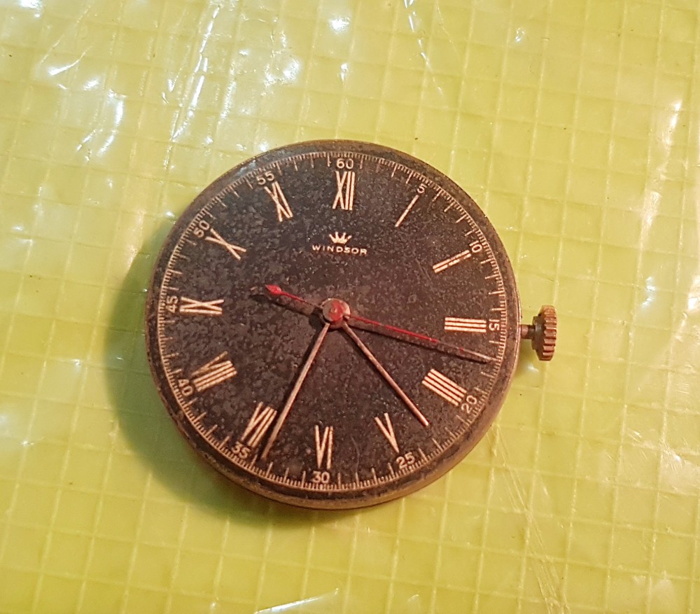 E657-I-Mecanism WINDSOR militar 16 Rubine ceas mana barbat vechi nefunctional. Initial ceas in aur. Cheita placata posibil chiar aur.
