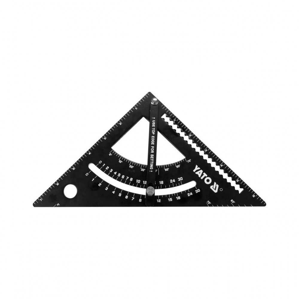 Un pătrat din aluminiu (set pătrat) care poate fi folosit ca ferăstrău, raportor sau ghidaj de ferăstrău.