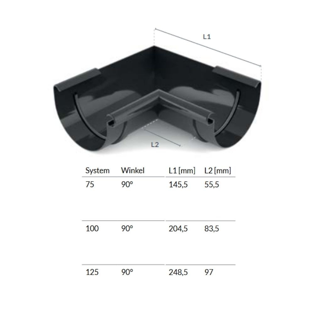 3. "Eckstück innen 90°" 75, 100, 125mm