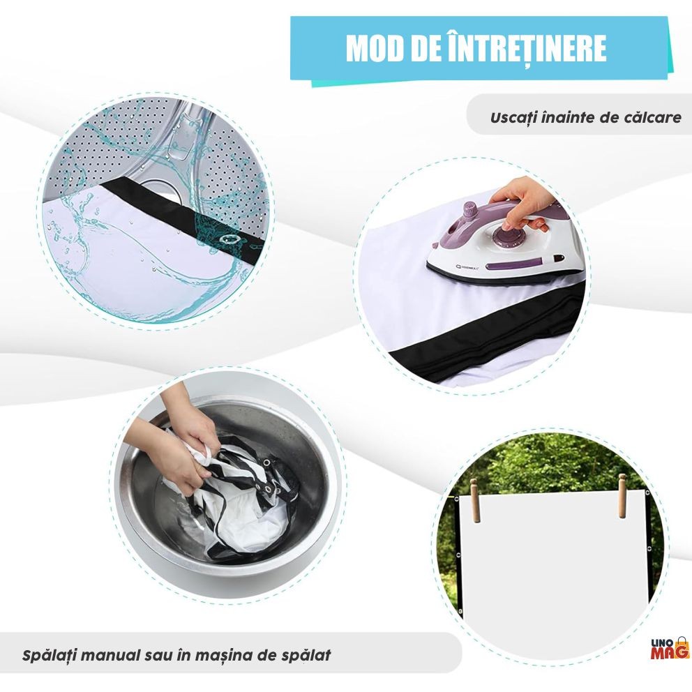 Dacă ecranul prezintă cute după pliere, poate fi netezit cu un fier de călcat cu aburi, la temperatură joasă.
