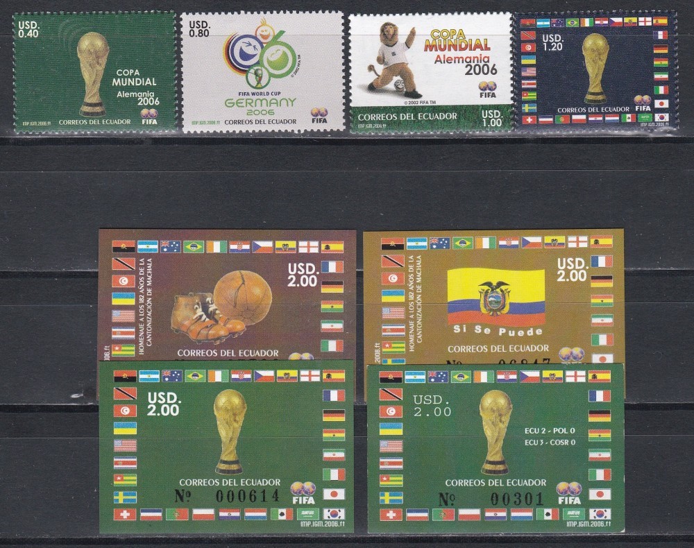 Ecuador 2006 - Cupa Mondială de Fotbal - Germania, Serie + 4 Colite NDT, SET COMPLET RAR, MNH (vopsea străpunsă pe 2 colițe)