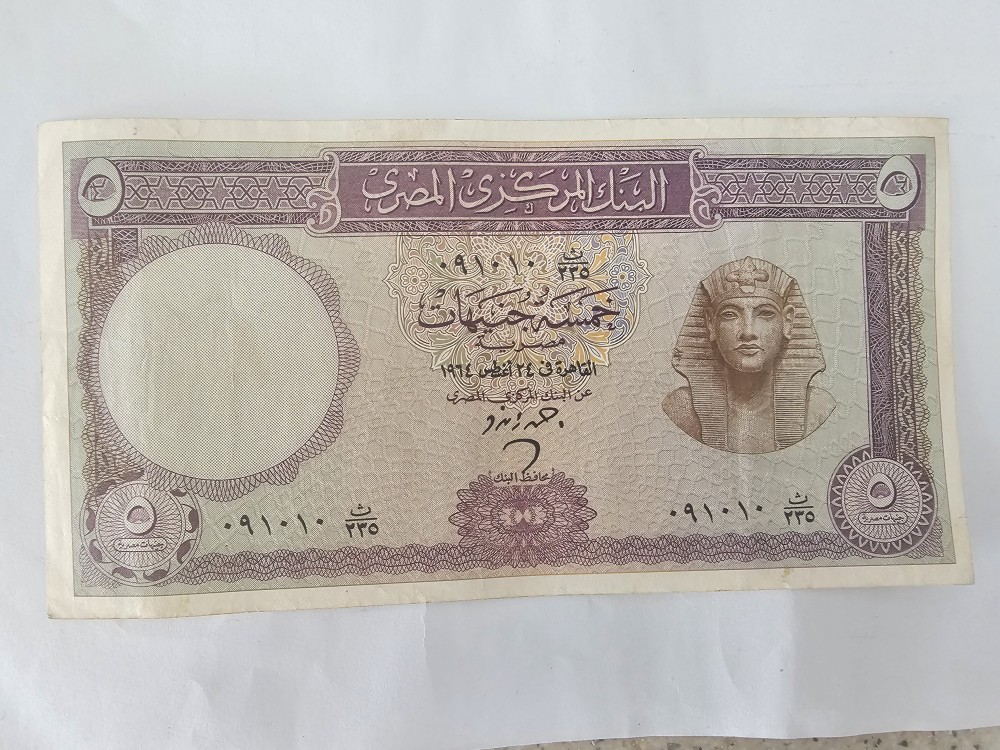 Egipt 5 pounds 1964,avans cont=15 lei,colet plata ramburs+plic