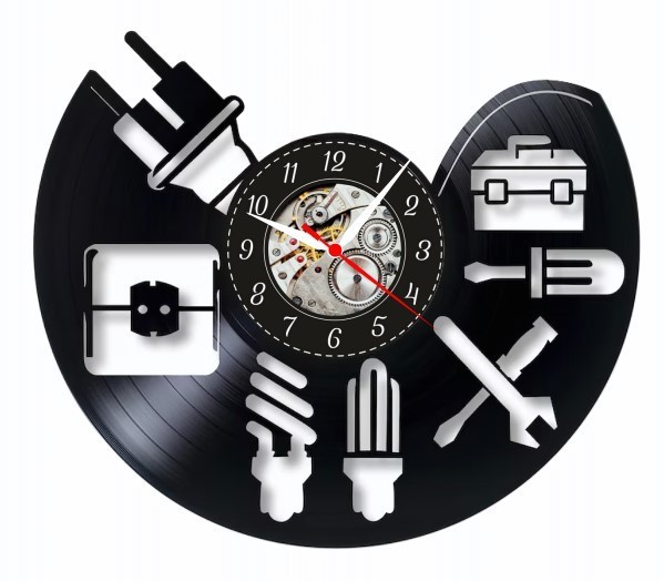 https://www.ceasul-bun.ro/wp-content/uploads/2025/07/ceasul-bun-3.mp4Ceas de Perete "Electrician Master" - Artă Profesională din Disc de VinilAceastă operă de artă funcțională este dedicată cu respect profesioniștilor în electricitate și tuturor celor care apreciază măiestria tehnică. Sculptat manual dintr-un disc de vinil autentic, designul celebrează meseria de electrician prin simboluri iconice și detalii tehnice precise.Design Profesional: Compoziția artistică prezintă o colecție completă de unelte și simboluri electrice - de la clasicul ciocan și cleștele de electrician, până la becuri, prize și trusa de scule. Fiecare element este poziționat strategic pentru a crea un echilibru vizual perfect și o poveste completă despre meserie.Elemente Tehnice Sculptate: