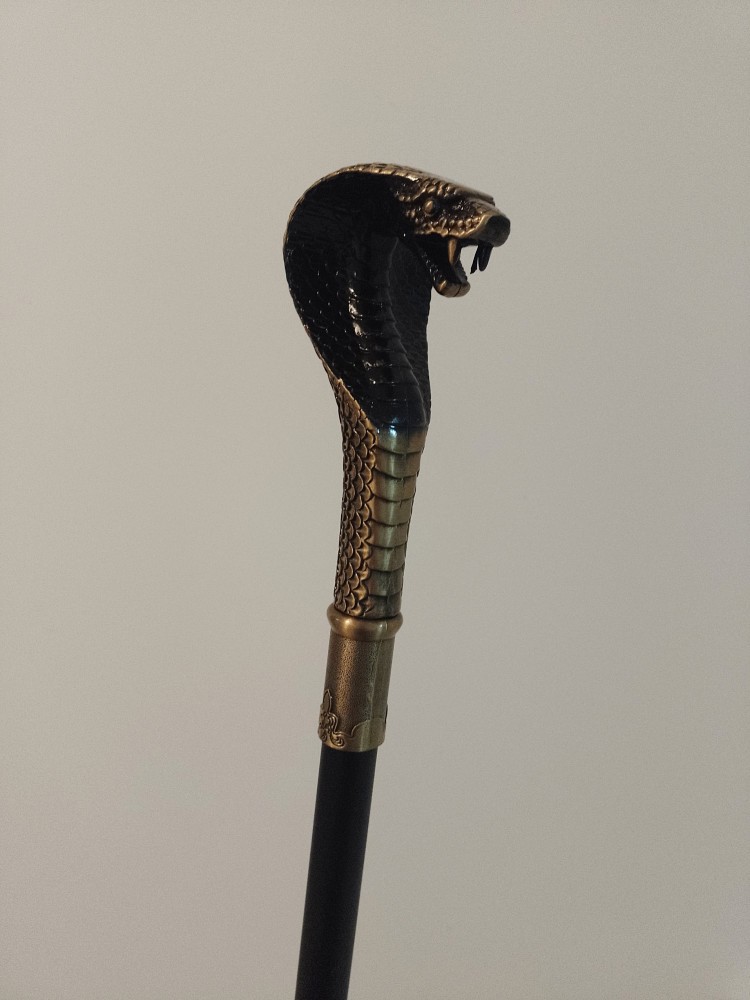 Elegant baston cu mâner cap de cobra din aliaj bronz ,piesa cu o lucrătură de o foarte mare finețe