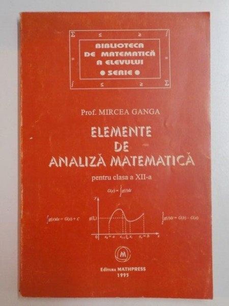 ELEMENTE DE ANALIZA MATEMATICA PENTRU CLASA A XII - A de MIRCEA GANGA , 1995