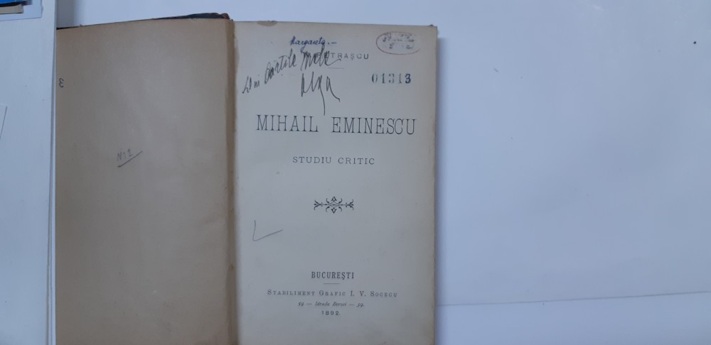 Eminescu:N. Petrascu,MIHAIL EMINESCU.Studiu critic,Bucuresti, 1892