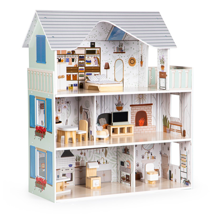 Un moment de joacă este suficient pentru ca copilul dumneavoastră să se îndrăgostească de ea. Întreaga casă este formată din 3 niveluri independente, cu un total de 4 camere. Fiecare cameră este realizată într-un stil diferit, cu decor și mobilier care se potrivesc cu caracterul și scopul camerei respective. Cu toate acestea, nimic nu împiedică copilul dumneavoastră să se joace de-a designerul de interior și să proiecteze casa conform propriilor idei.