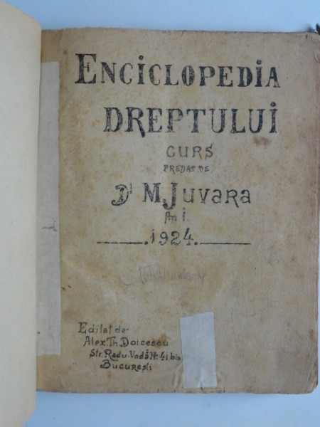 Curs predat de M. Juvara in 1924, editat de Alex. Th. Doicescu,