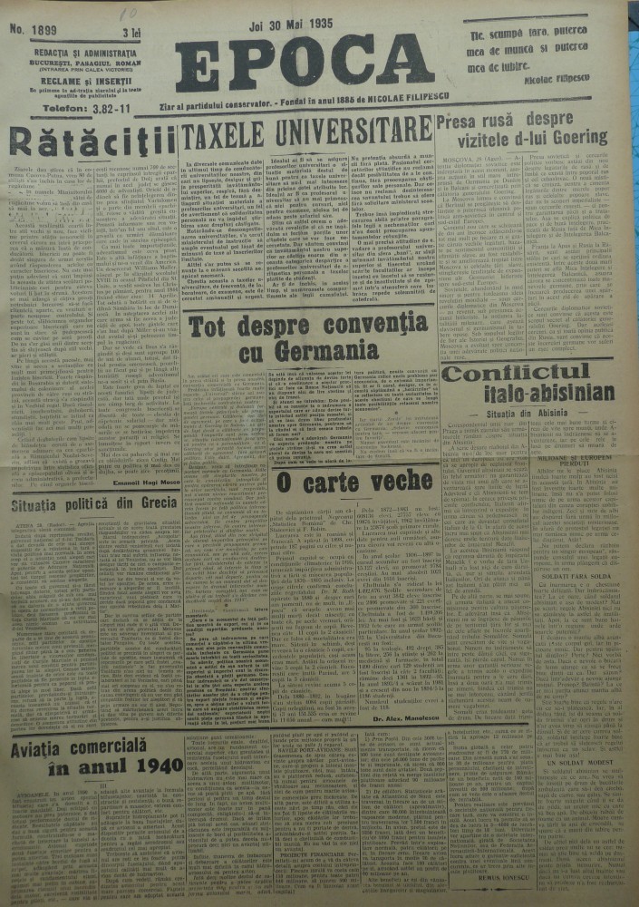 Epoca , ziar al Partidului Conservator , 30 Mai 1935 , Hagi Mosco , Mihalache