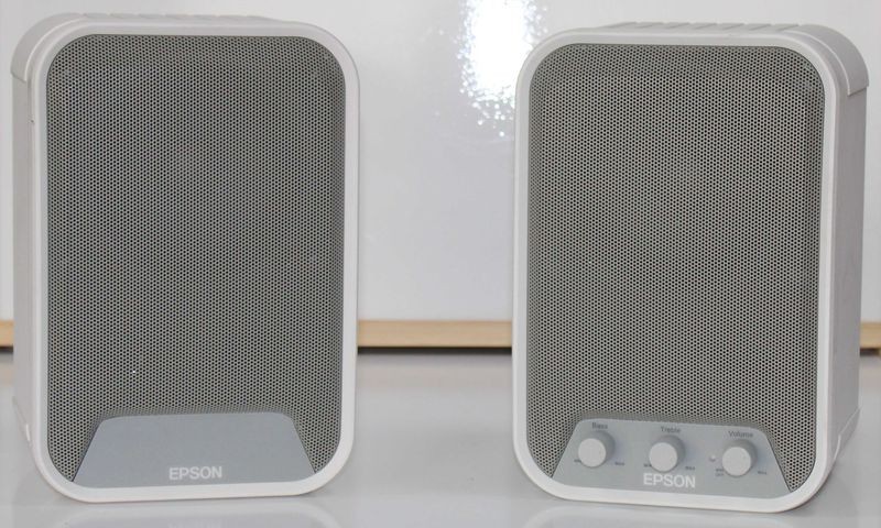 Вижте и другите ни обяви! Гаранция 6 месеца. - Произведени в Япониоя от Seiko Epson Corporation - 2x30w максимална мощност ,80 Hz - 20 kHz - Пълен комплект кабели,захранващ адаптер и стойка за стена. - Може да се ползват и като говорители за бюро. - Идеално решение за озвучаване на търговски обект, тъй като колоните могат да се свързват последователно една в друга и да възпроизвеждат звук от един източник. - Предвидени за инсталация с проектори Epson или други марки проектори,без ограничение. - Размери (Ш, Д, В), cm 16 x 13.7 x 23.2