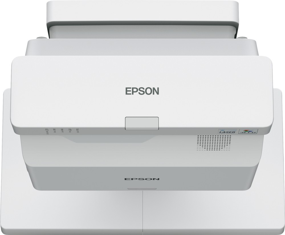 EPSON Proiector Laser EB-760W, Tehnologie 3LCD, Display LCD 0.59", 4100 Lumeni, Rezolutie: WXGA HD ready, Rata aspect: 16:10, Contrast: 2.500.000 : 1, Sursa lumina: Laser, Durata de viata sursa lumina: 20.000h, 30.000h mod ECO, Refresh rate: 100 Hz - 120 Hz, Dimensiune proiectare: 60"-150", Interfata: USB 2.0-A (2x), RS-232C, Ethernet interface (100 Base-TX / 10 Base-T), Wireless LAN IEEE 802.11a/b/g/n/ac, VGA in (2x), VGA out, HDMI in (3x), Composite in, Miracast, Jack plug out, Jack plug in (3x), USB 2.0 Type B (Service Only), Wi-Fi Direct, Microphone input, Dimensiuni:356 x 395 x 133 mm, greutate 5,9 kg, Culoare:alb, Difuzor incorporat 16w.