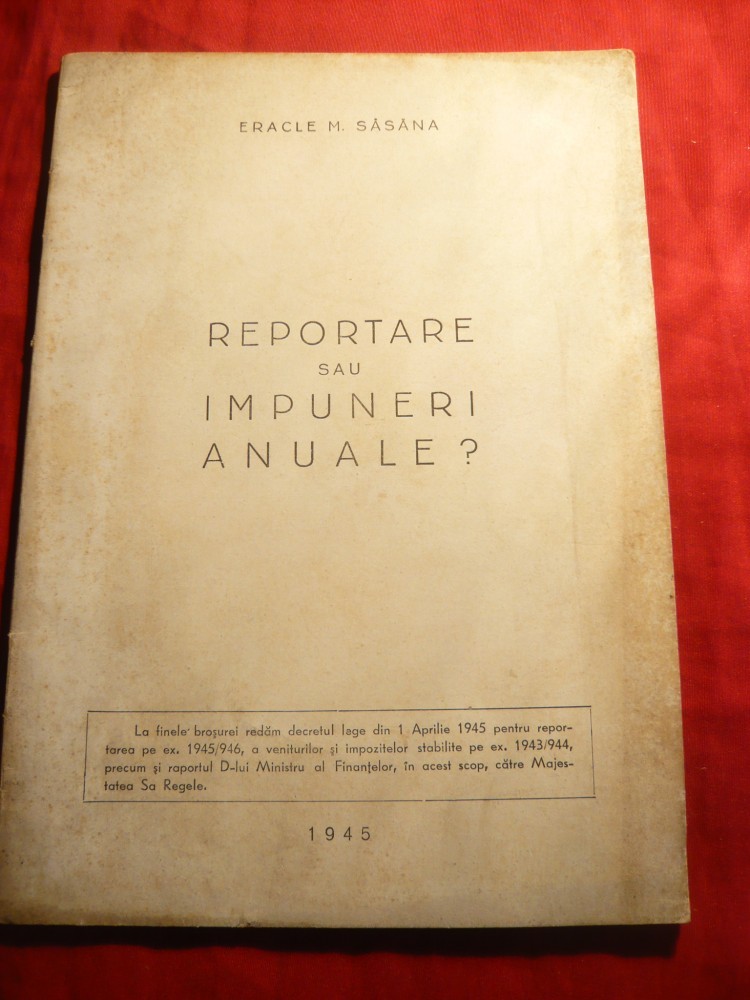 Eracle M.Sasana - Reportare sau impuneri anuale - Ed.Unirea 1945
