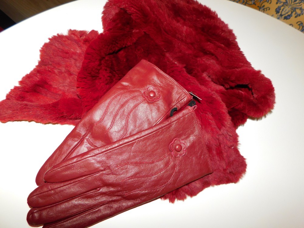 Esarfa blana naturala iepure , manusi noi piele naturala