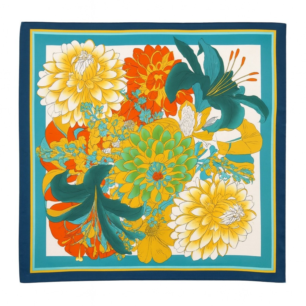 Esarfa din satin Flowers este accesoriul perfect pentru a adauga un plus de culoare si rafinament tinutelor tale. Materialul moale si placut la atingere se asaza elegant la gat, in par sau atasata de geanta. Imprimeul floral viu colorat transforma aceasta esarfa intr-un detaliu chic si versatil, potrivit atat pentru tinute de zi, cat si pentru ocazii speciale. Dimensiunea de 70x70 cm permite multiple modalitati de purtare.