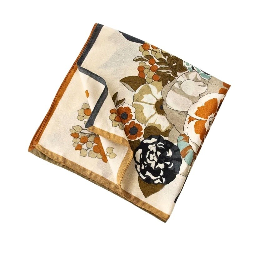 Esarfa patrata Orange Flower un produs cu suflet, creat pentru cei care aleg constient.