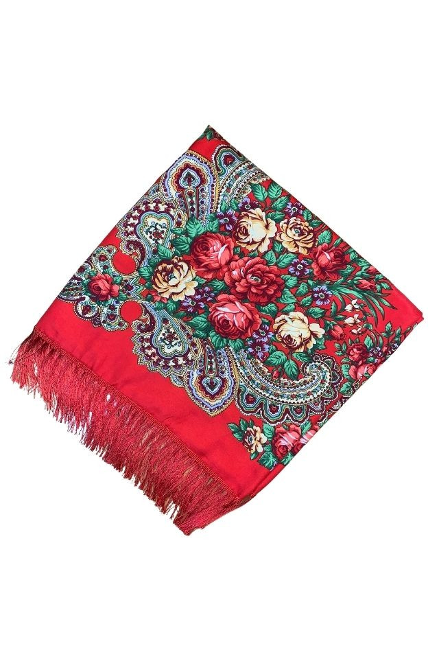 Esarfa tip sal cu flori, Dacali, rosu, 107 x107 cm