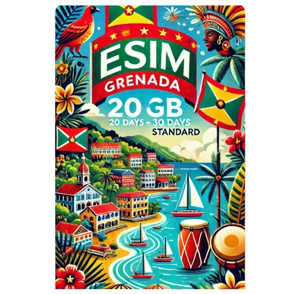eSIM Roaming 20GB Standard – Internet de mare viteză până la 5G, valabil 30 de zile,Grenada