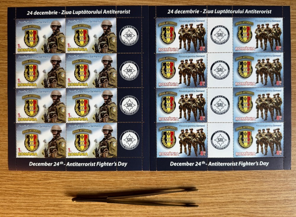 Evenimente militare - Ziua Luptatorului Antiterorist, minicoli de 8 timbre si 4 viniete 2012 LP 1962c